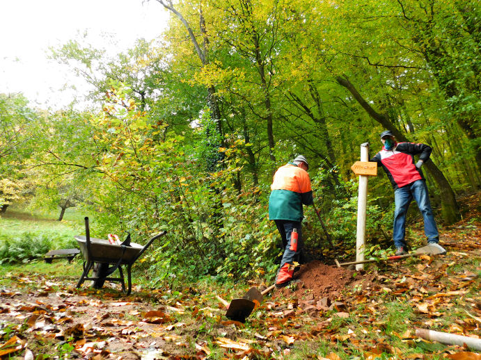 Aus diesem Grunde hat sich Gérard Salmon Gedanken gemacht und eine Route ausgearbeitet, die historisch etwas bietet und dem Wanderer gleichzeitig schöne Ausblicke beschert. Nachdem die von ihm geplante Wegeführung im September 2020 die Zustimmung des Ortsbeirates gefunden hatte, gravierte Salmon 10 Holzwegweiser, die er Ende Oktober mit Unterstützung von Wilhelm Storr, angebracht hat.