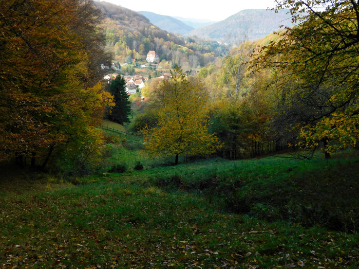 Ein Stück des Weges begleitet den Wanderer die herrliche Sicht auf Trifels, Anebos, Has und Burgruine Scharfenberg, die das Tal einengen. Zu jeder Jahreszeit reizvoll ist der Blick auf Bindersbach. Dabei präsentiert sich der alte Dorfkern als wahres Postkartenmotiv.