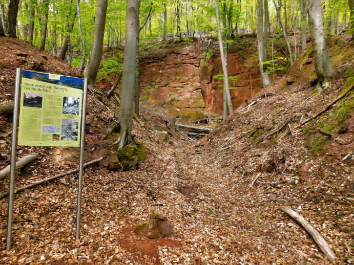 Nach einem etwas steilen Anstieg führt der Weg schließlich bequem zum ehemaligen, privaten Steinbruch am Neuweg, der um 1790 erstmals Erwähnung findet. Wann die Arbeiten im Steinbruch eingestellt worden sind geht aus den derzeit vorhandenen Quellen nicht hervor.