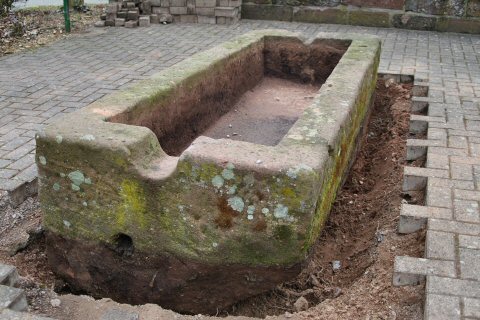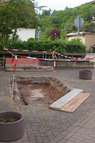 Der alte Brunnentrog am Ortseingang ist ausgegraben und konnte nahezu