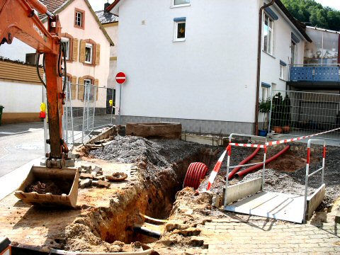 Verlegung der Ver- und Entsorgungsleitungen für die neue Brunnenanlage.