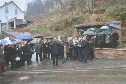 versammelten sich auf dem Dorfplatz die Schuljugend, der Gesangverein, der Gemeinderat sowie ein Großteil der Bevölkerung.