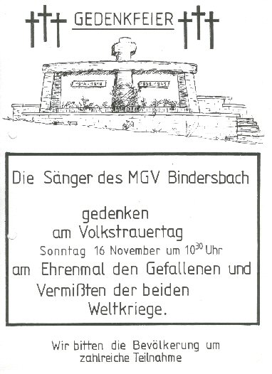„… Schlicht und einfach, jedoch eindrucksvoll gestaltete sich die Feier für die im Kriege gefallenen Bindersbacher. Gegen 3 Uhr