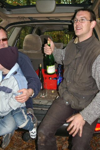 Aus dem Kofferraum seines Autos zauberte er Getränke für die durstigen Kehlen.