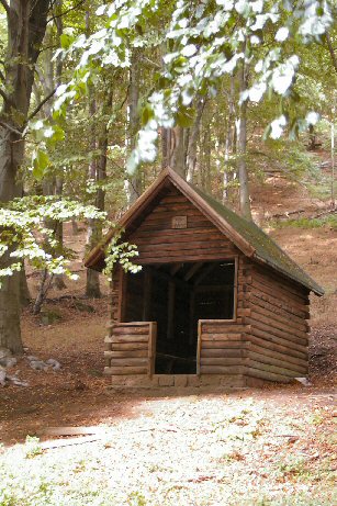 Die Schutzhütte auf dieser Lichtung lädt den Wanderer zu einer kleinen Rast ein.