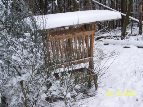 zeugt diese leere Futterkrippe vom Hunger der Waldbewohner.