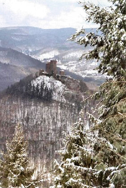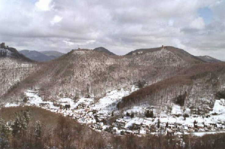 Im Februar 2005 faszinierte uns dieser Blick auf die Bergkette Trifels, Anebos, Münz