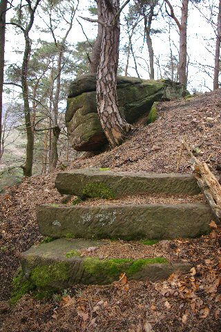 Zweimal drei Sandsteinstufen zeigen dem Wanderer an,